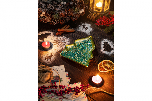 БЫЛО 559 руб! Блюдо 17*14,5*2,5 см "Елочка" золотое с зеленым орнаментом