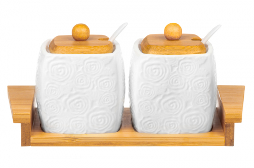 БЫЛО 1176 руб! Набор 2 сахарниц 400 мл 24,5*10*11 см "Розы" + ложки + дер. крышки на дер. подстав.