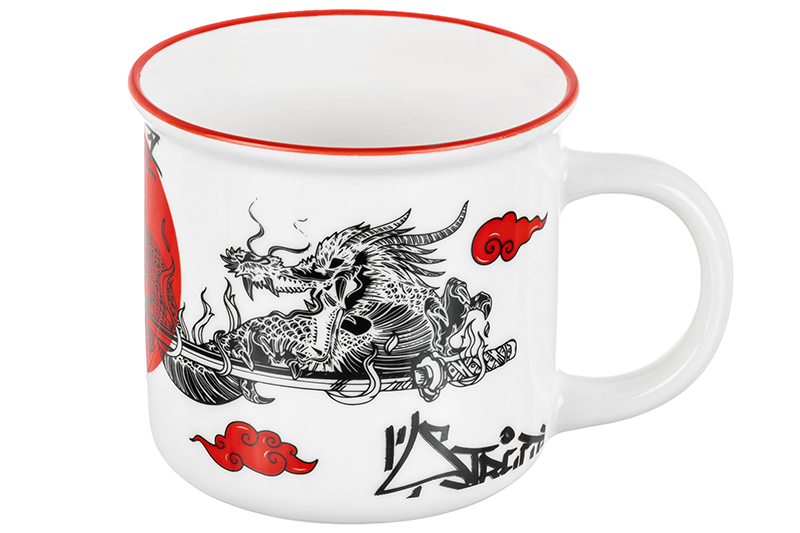 БЫЛО 300 руб! Кружка 400 мл 13*9,5*8,8 см "Китайский дракон" красный, NEW BONE CHINA