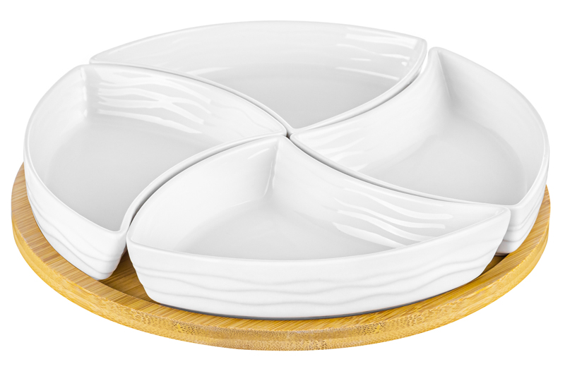 БЫЛО 1176 руб! Менажница 25*25*6 см "Айсберг волны" крутящ. 4 секции на дерев. подставке