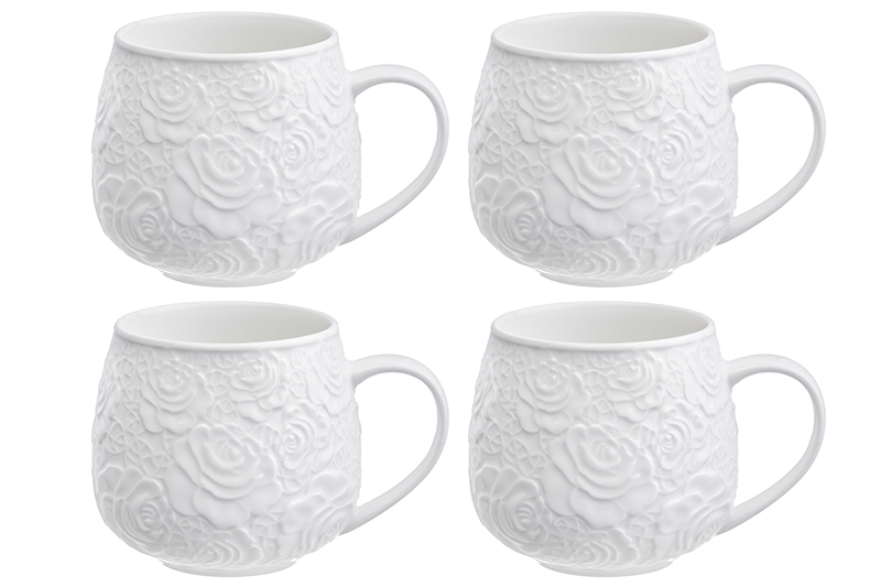БЫЛО 1197 руб! Набор 4 кружек 400 мл 12,5*9,5*8,5 см "Белые розы" бочонок