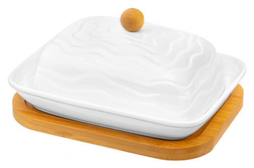 БЫЛО 977 руб! Масленка 16,5*13*8,5 см "Айсберг волны" на деревянной подставке