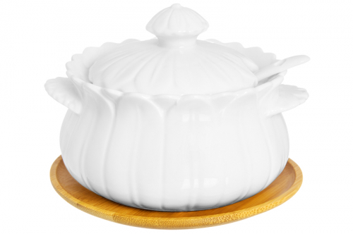 БЫЛО 654 руб! Сахарница 400 мл 13*11*10 см "Цветок" + ложка + дерев. подставка