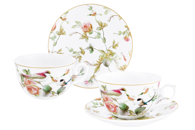 БЫЛО 1215 руб! Чайн. пара 4 пр. 250 мл 12,5*9*6,5 см "Певчие птички" NEW BONE CHINA