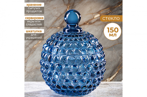 БЫЛО 319 руб! Горшочек д/меда 150 мл 8,5*8,5*11 см "Пузырьки" синий, круг