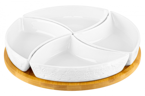 БЫЛО 1176 руб! Менажница 25*25*6 см "Розы" крутящ. 4 секции на дерев. подставке