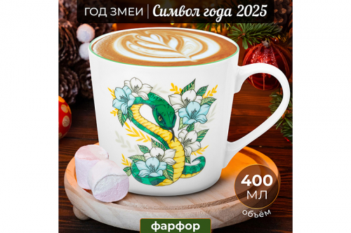 БЫЛО 324 руб! Кружка 400 мл 13*9,7*9 см "Змея в цветах" NEW BONE CHINA