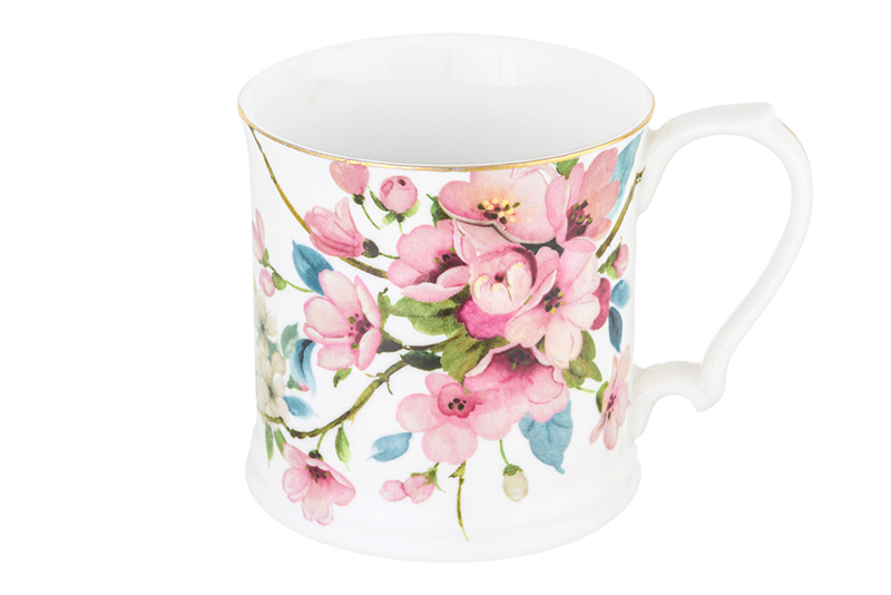 БЫЛО 404 руб! Кружка 380 мл 12,3*9*9 см "Яблоневый цвет на белом" NEW BONE CHINA