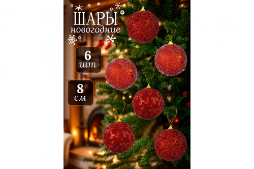 Набор 6 новогодних шаров 8*8 см "Красный"