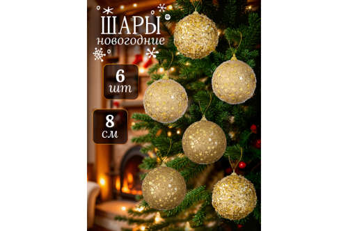Набор 6 новогодних шаров 8*8 см "Золото"