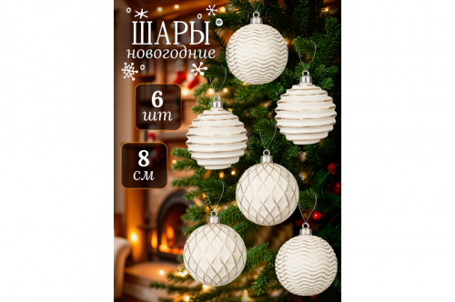 Набор 6 новогодних шаров 8*8 см "Серебро"