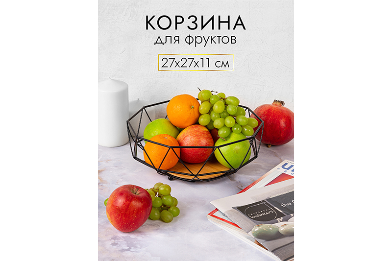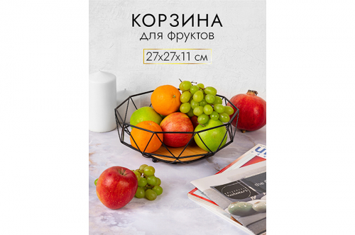 БЫЛО 842 руб! Корзина для фруктов 27*27*11 см "Черная" с бамбуковым дном