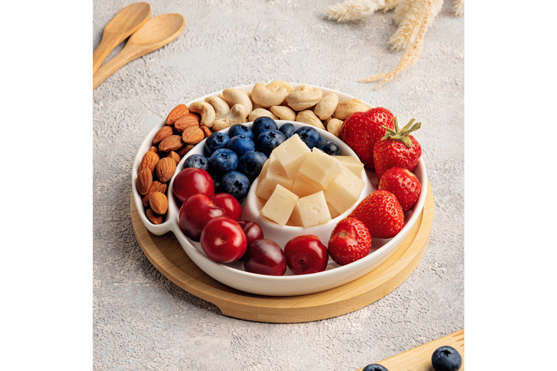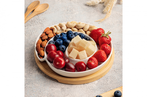 БЫЛО 1013 руб! Тарелка сервировочная - менажница 23*23*5 см 450 мл "Улитка" глубокая на деревян. подставке-подносе