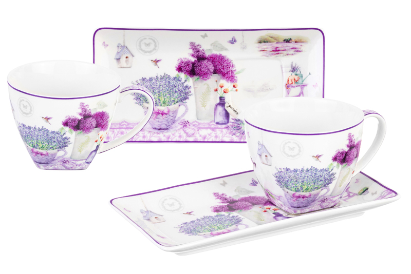 БЫЛО 2089 руб! Набор 2 чашек 250 мл с блюдцами для десерта 20*10*2 см "Лаванда" NEW BONE CHINA