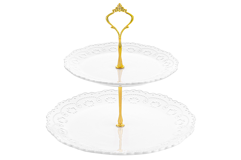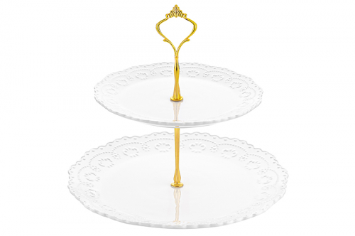 БЫЛО 1446 руб! Блюдо-этажерка 2-х ярусная 28*28*25 см "Белый узор" с золотистым креплением, для фруктов и конфет
