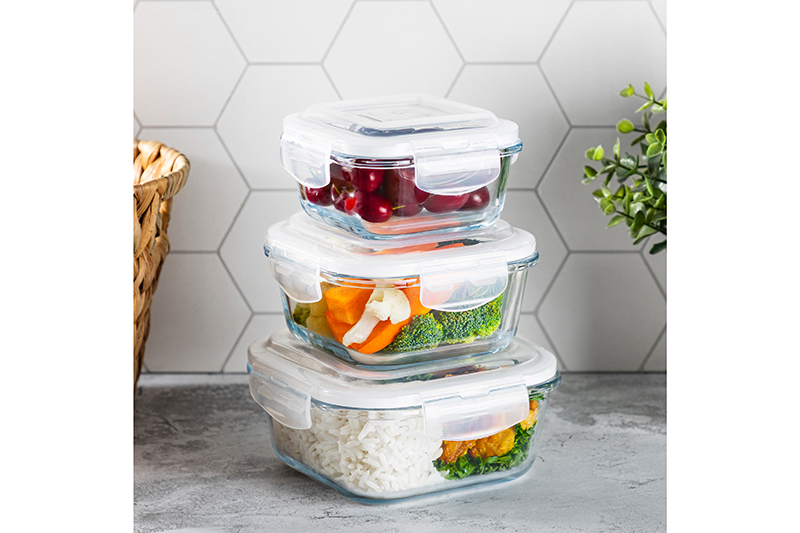 БЫЛО 922 руб! Набор 3 квадратных контейнеров 300 мл, 500 мл, 800 мл с пластик. крышк. с защел., с сил.уплотн