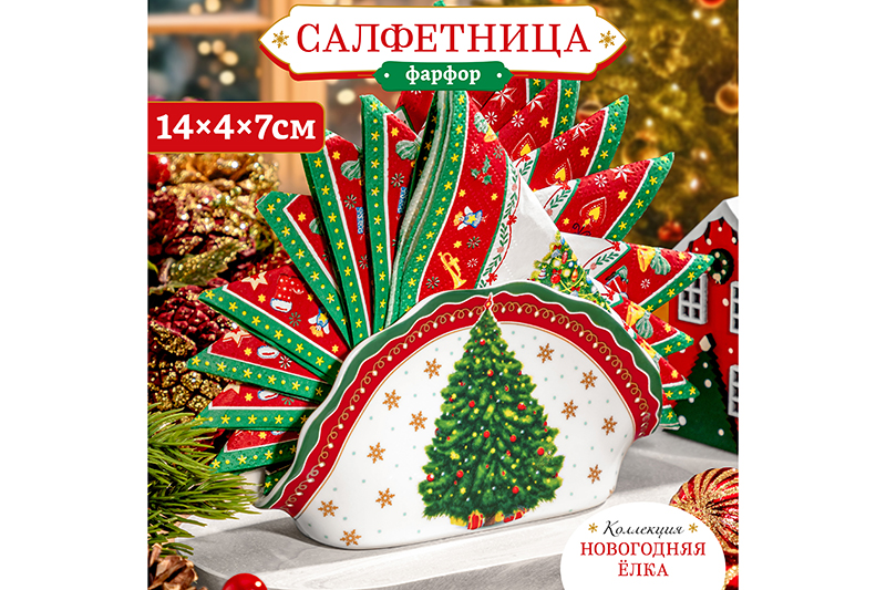Салфетница 14,5*4,5*7,5 см "Новогодняя елка" красный узор NEW BONE CHINA