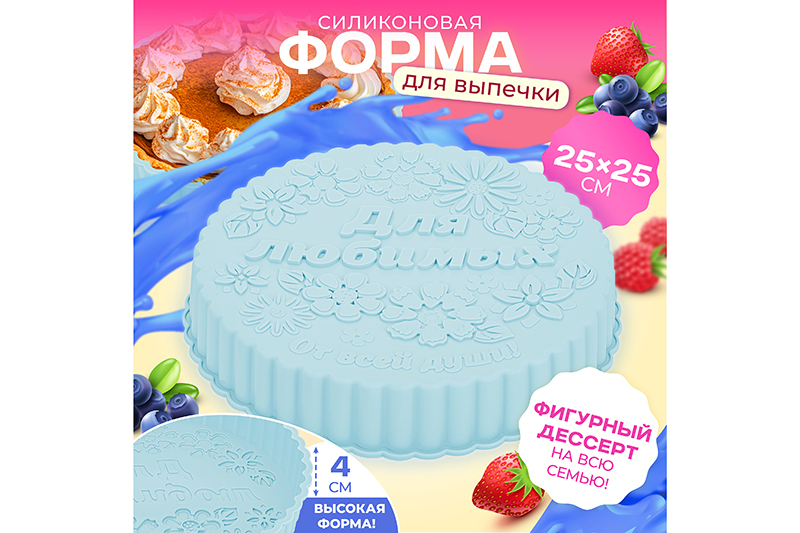 БЫЛО 286 руб! Форма для выпечки 25,5*25,5*4 см "Для любимых" голубая