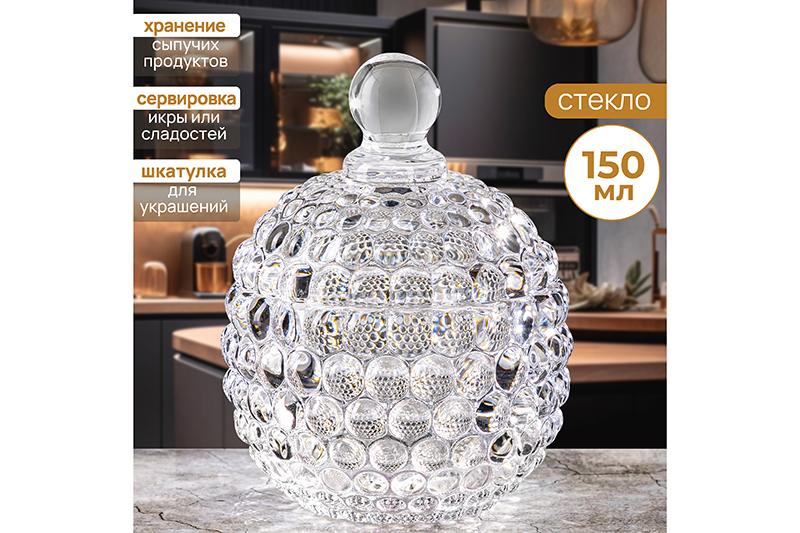 БЫЛО 312 руб! Горшочек д/меда 150 мл 8,5*8,5*11 см "Пузырьки" круг