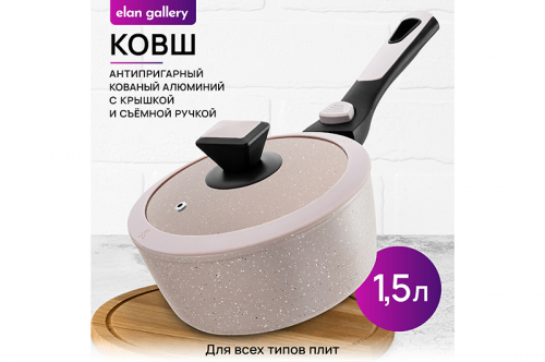 БЫЛО 1913 руб! Ковш 1,5 л FIERRA "Бежевый мрамор" С КРЫШКОЙ ф19, с/р, 36,5*19,5*13,5 см