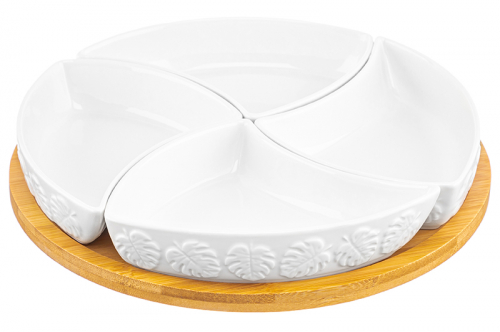 БЫЛО 1291 руб! Менажница 25*25*6 см "Тропики" крутящ. 4 секции на дерев. подставке