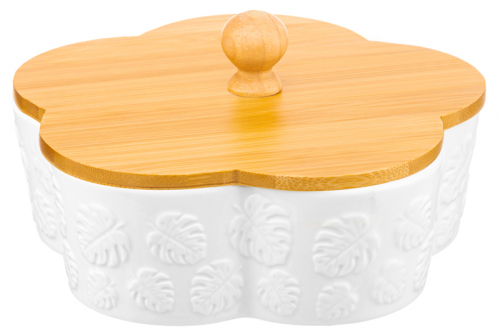 БЫЛО 1286 руб! Банка д/печенья 19,5*19,5*10 см 900 мл "Цветок Тропики" с дерев. крышкой