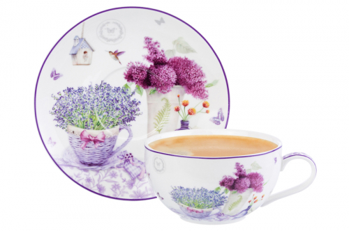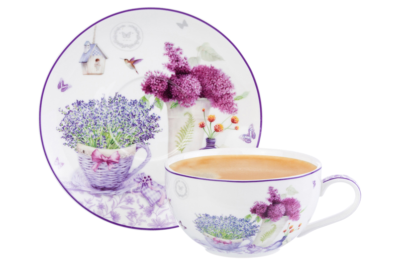 БЫЛО 876 руб! Чашка для капучино + блюдце 350 мл 14*11*6 см "Лаванда" NEW BONE CHINA
