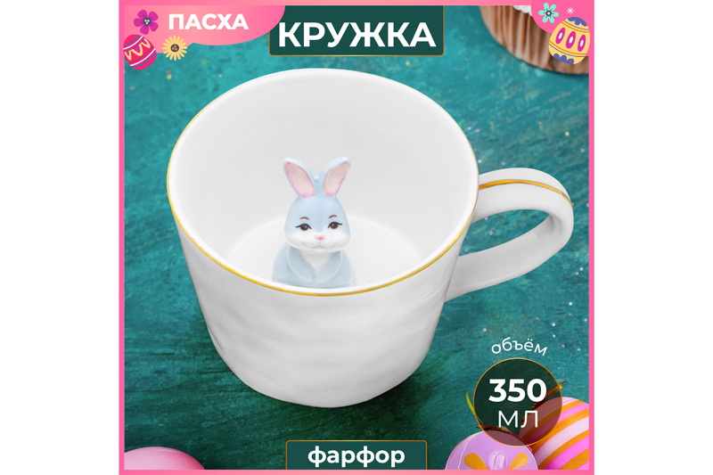 БЫЛО 675 руб! Кружка 350 мл 14*10*7,5 см "Любопытный кролик внутри кружки" цветная