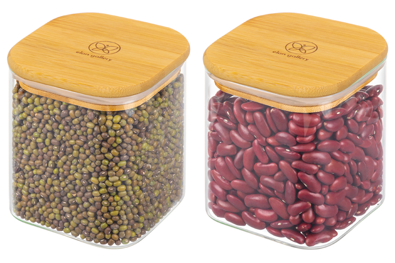БЫЛО 1175 руб! Набор 2 банок д/хранения 800 мл 10*10*11,5 см "Crystal glass" + бамбук.крышка с силиконовой проклад