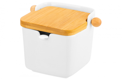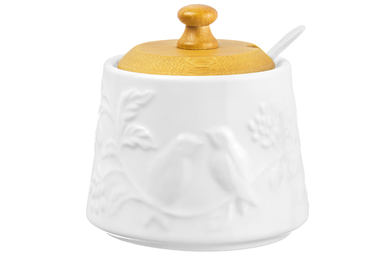БЫЛО 523 руб! Сахарница 350 мл 9,7*9,7*10,5 см "Птички на ветке" + ложка + дер. крышка.