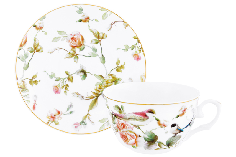 БЫЛО 727 руб! Чайн. пара 2 пр. 250 мл 12,5*9,5*6 см "Певчие птички" NEW BONE CHINA