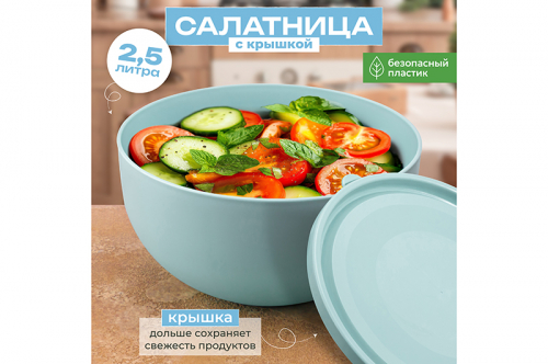 БЫЛО 202 руб! Салатница с крышкой 2,5 л 21*21*10,8 см серо-голубой (модель 281)