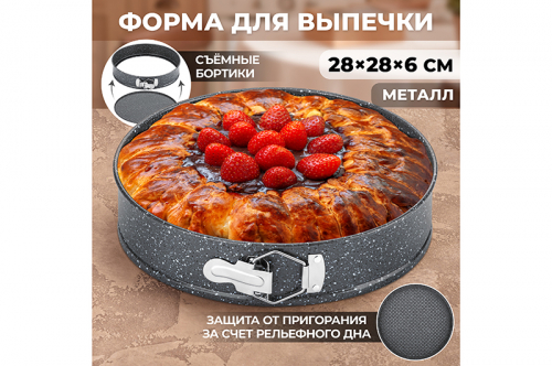 БЫЛО 536 руб! Форма для выпечки 28*28*6,5 см "Серый мрамор" разъёмная