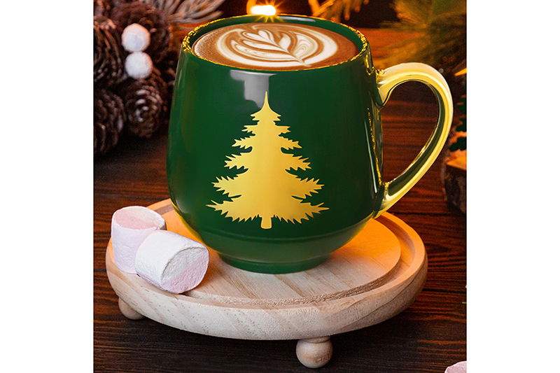 БЫЛО 781 руб!! Кружка 530 мл 13,5*10,5*10,7 см "Золотой Новый Год" зеленая с елью NEW BONE CHINA