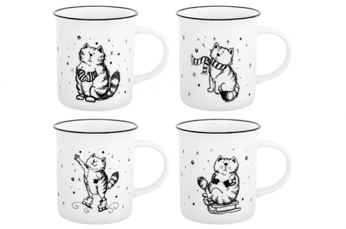 БЫЛО 918 руб! Набор 4 кружек 320 мл 11,5*8,5*9 см "Зимние Котики" NEW BONE CHINA