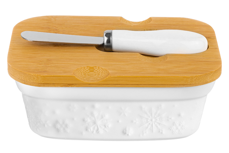 БЫЛО 634 руб! Паштетница 14,8*11,2*5,5 см 390 мл "Снежинки" + крышка + нож