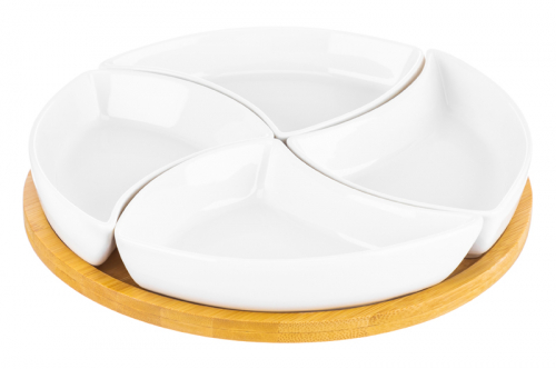 БЫЛО 980 руб! Менажница 25*25*6 см "Айсберг" крутящ. 4 секции на дерев. подставке