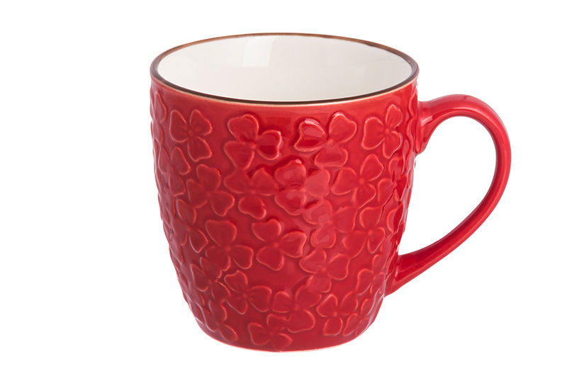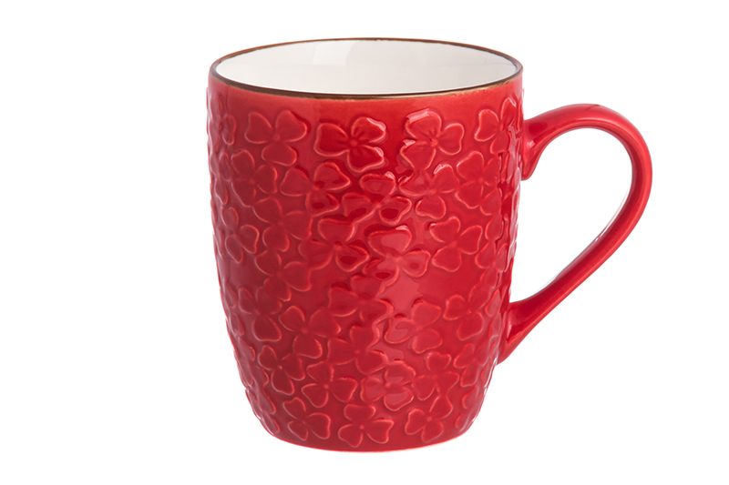 БЫЛО 160 руб!!! "Кружка 350 мл 12*8,5*10 см "Цветок" красная, выпуклый рисунок, кор. кант, NEW BONE CHINA"