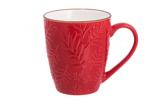 БЫЛО 160 руб!!! "Кружка 350 мл 12*8,5*10 см "Ветвь" красная, выпук. рисунок, кор.кант, NEW BONE CHINA"