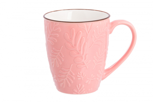 БЫЛО 160 руб!!! "Кружка 350 мл 12*8,5*10 см "Ветвь" коралловая, выпук. рисунок, кор.кант, NEW BONE CHINA"