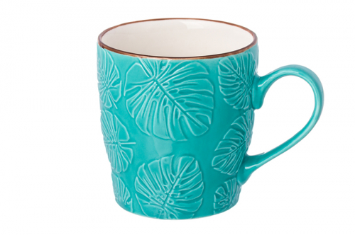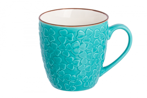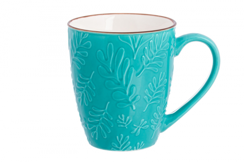 БЫЛО 160 руб!!! "Кружка 350 мл 12*8,5*10 см "Ветвь" бирюзовая, выпук. рисунок, кор.кант, NEW BONE CHINA"