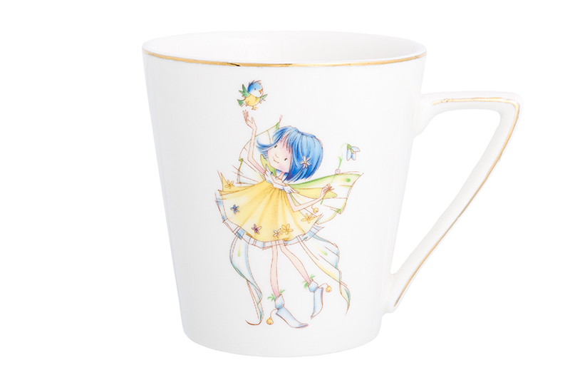 БЫЛО 146 руб!!! "Кружка 190 мл 10,5*7,5*8 см "Девочка - фея с птичкой в желтом"