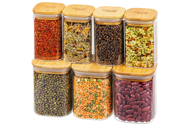 БЫЛО 2012 руб! Набор 7 банок д/хранения 3 пр. 450 мл + 4 пр. 250 мл "Crystal glass" + бамб.крышка с силик.прок.