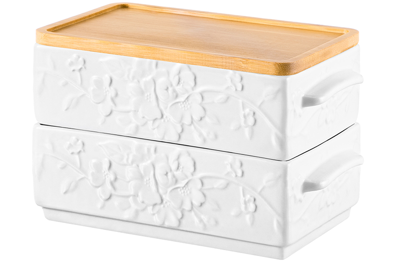 БЫЛО 1304 руб! Набор 2 блюд д/холодца 800 мл 20,5*12*12 см "Цветущая сакура" + бамбуковая крышка