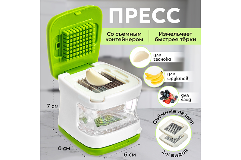 БЫЛО 499 руб! Пресс для чеснока 6,7*6,3*7,5 см, зеленый