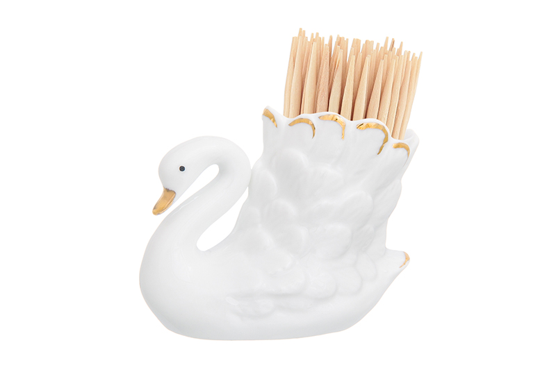Вазочка п/зубоч. 7*3,5*5,5 см 25 мл "Лебедь" белая, золото