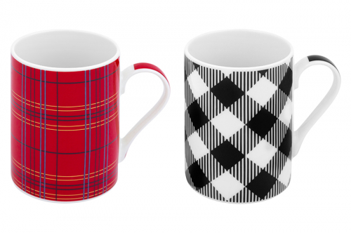 БЫЛО 346 руб! Набор кружек 2 пр. 300 мл 10,5*7,3*10,2 см "Клетка - красная и черно-белая" NEW BONE CHINA