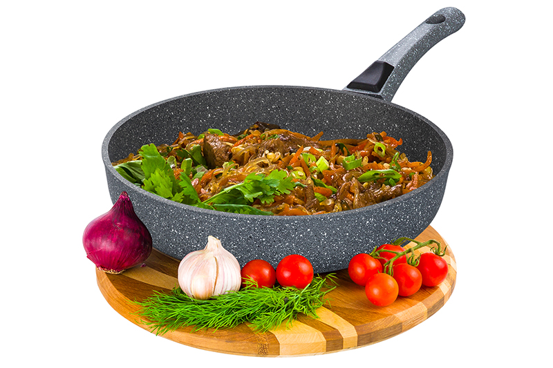 БЫЛО 2009 руб.Сковорода глубокая 26 см "Мрамор" без крышки, с/р, 47*27*9,5 см