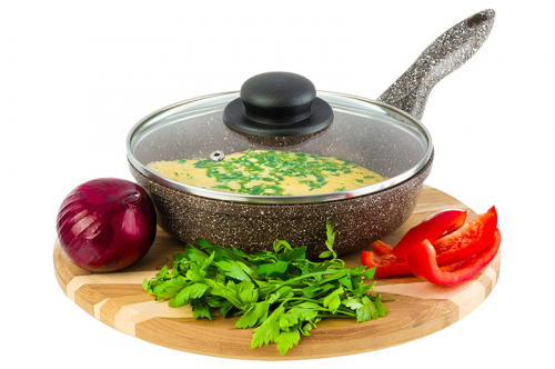 БЫЛО 2008 руб.Сковорода глубокая 26 см ГАРМОНИЯ ВКУСА "Коричневый мрамор" ИНДУКЦИЯ, С КР. ф26, н/р, 46*27*12,5 см