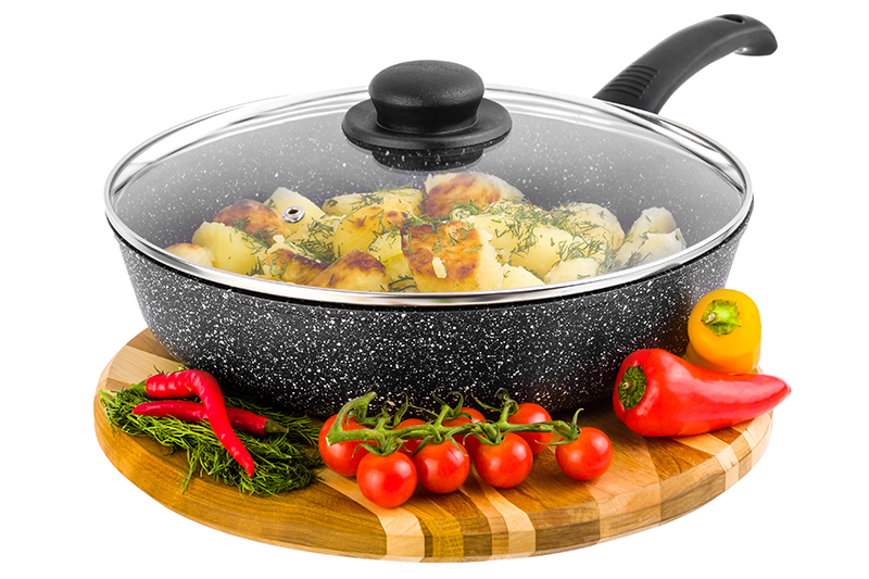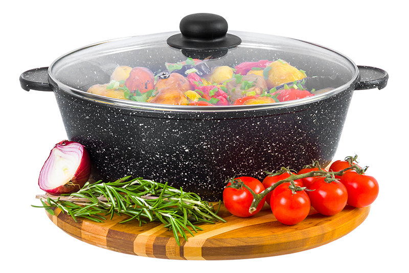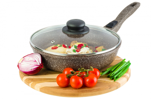 БЫЛО 2541 руб.Жаровня (сотейник) 28 см 4,5 л ГАРМОНИЯ ВКУСА "Черный мрамор" С КРЫШКОЙ ф28, 35*29*14,5 см